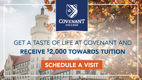 A Christian college in Lookout Mountain, GA, with just over 1,000 students, Covenant College offers a rigorous, yet intimate, educational experience. Our uncompromising, theologically rich curriculum prepares students to pursue their callings, providing them with practical academics in a faithful community where they will be known as a whole person. Covenant’s accomplished, Christian faculty guide students on a personal level, equipping them for a lifetime of study and growth.