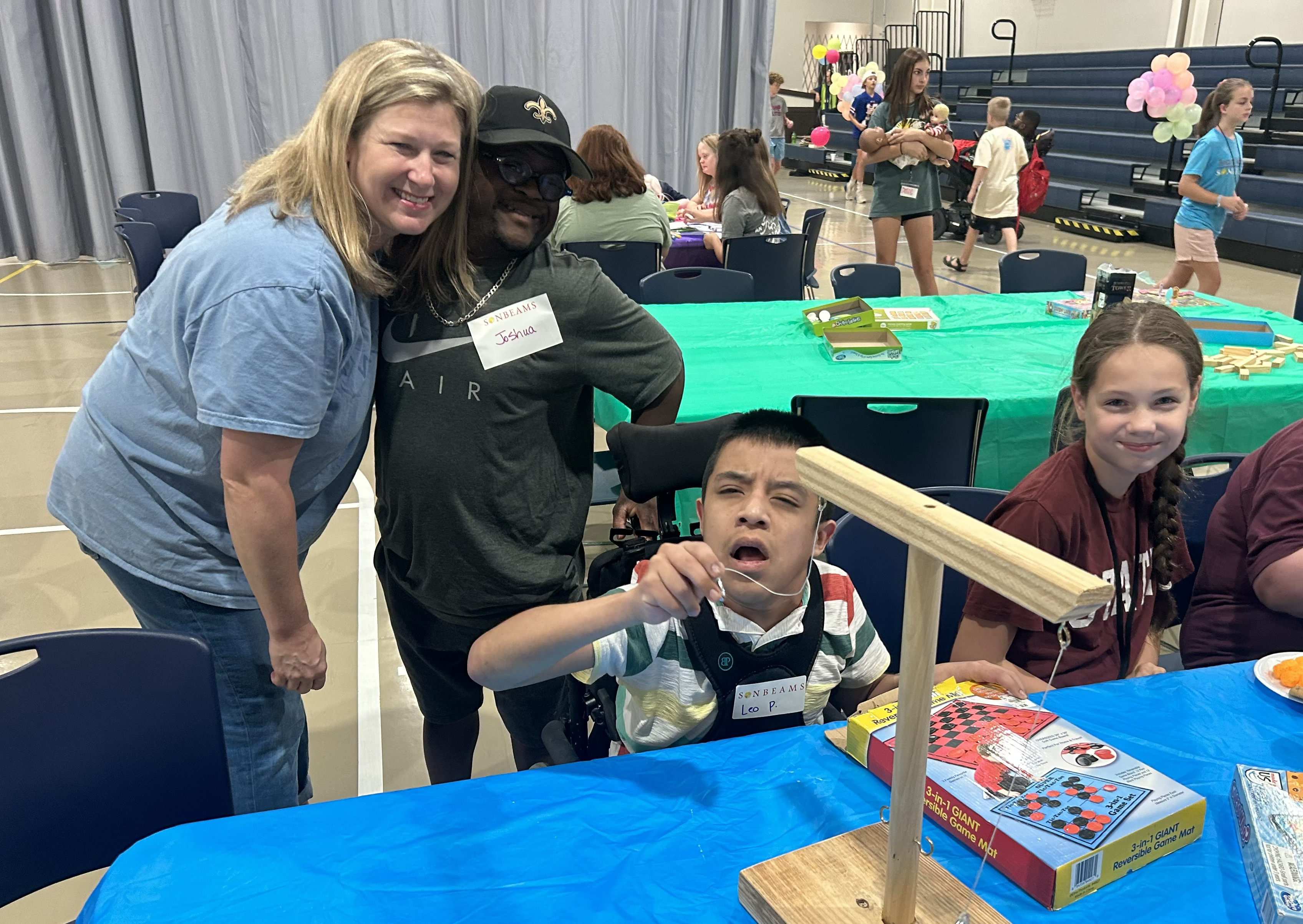DAPHNE: So this side is more games and puzzles and tossing things and bingo. Basketballs are over there. They'll get name tags. If they have an allergy or something like that, you'll see it in red, so that the buddy will know.