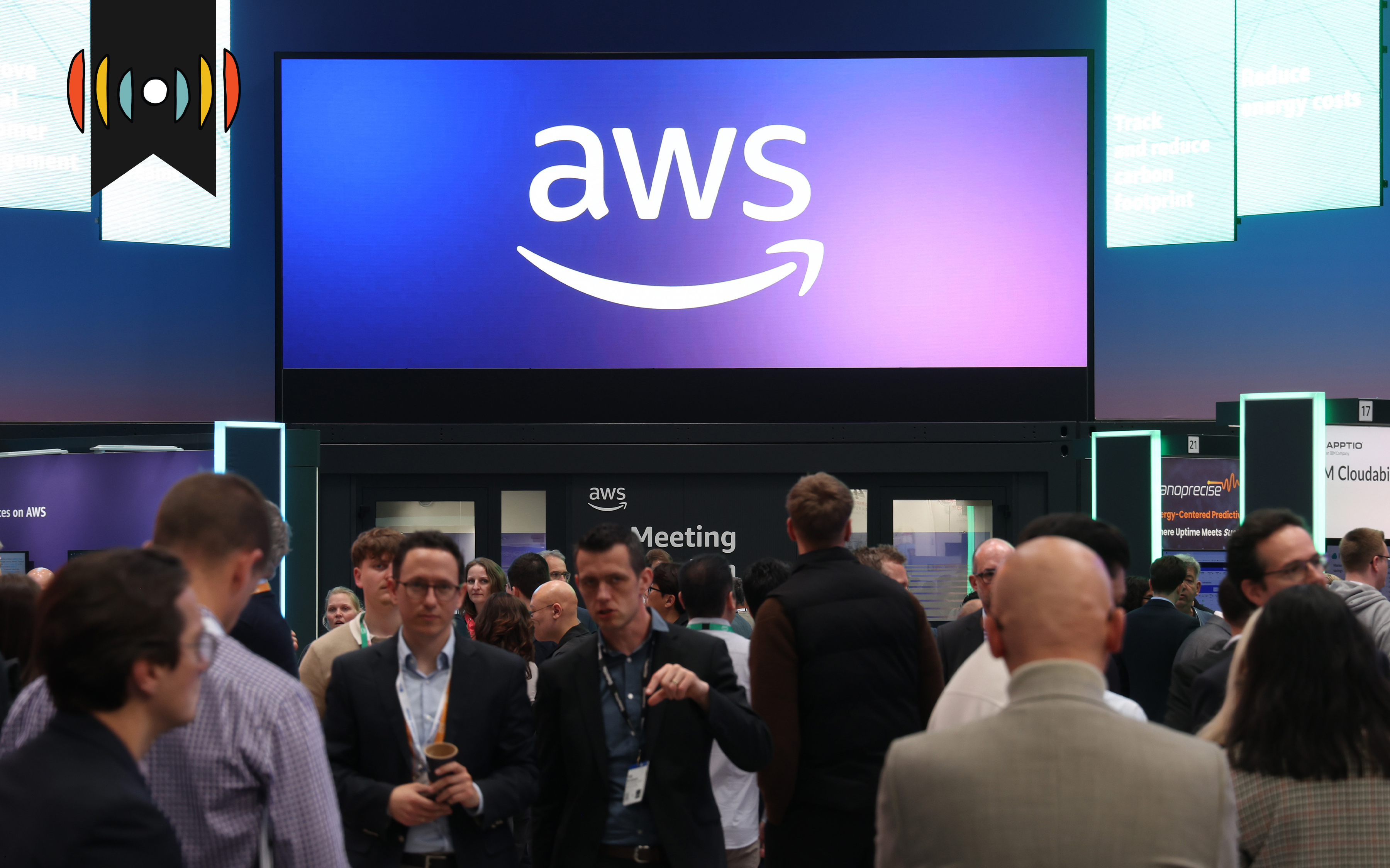 The AWS Amazon Web Services pavilion stands at a trade fair in Hanover, Germany Getty Images / Photo by Sean Gallup