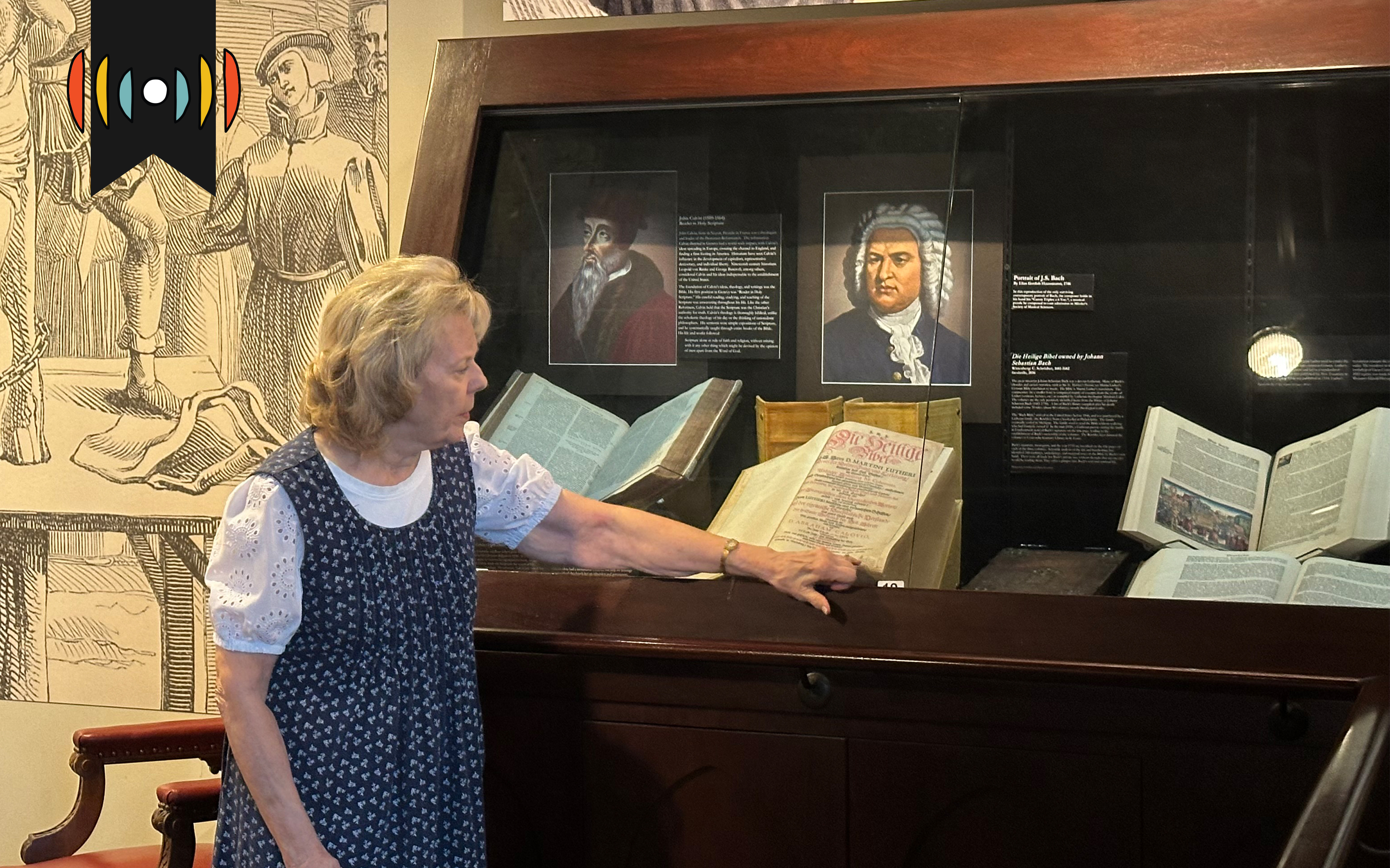 Dunham Bible Museum director Diana Severance explains the history of a Bible at the museum. Photo by Todd Vician