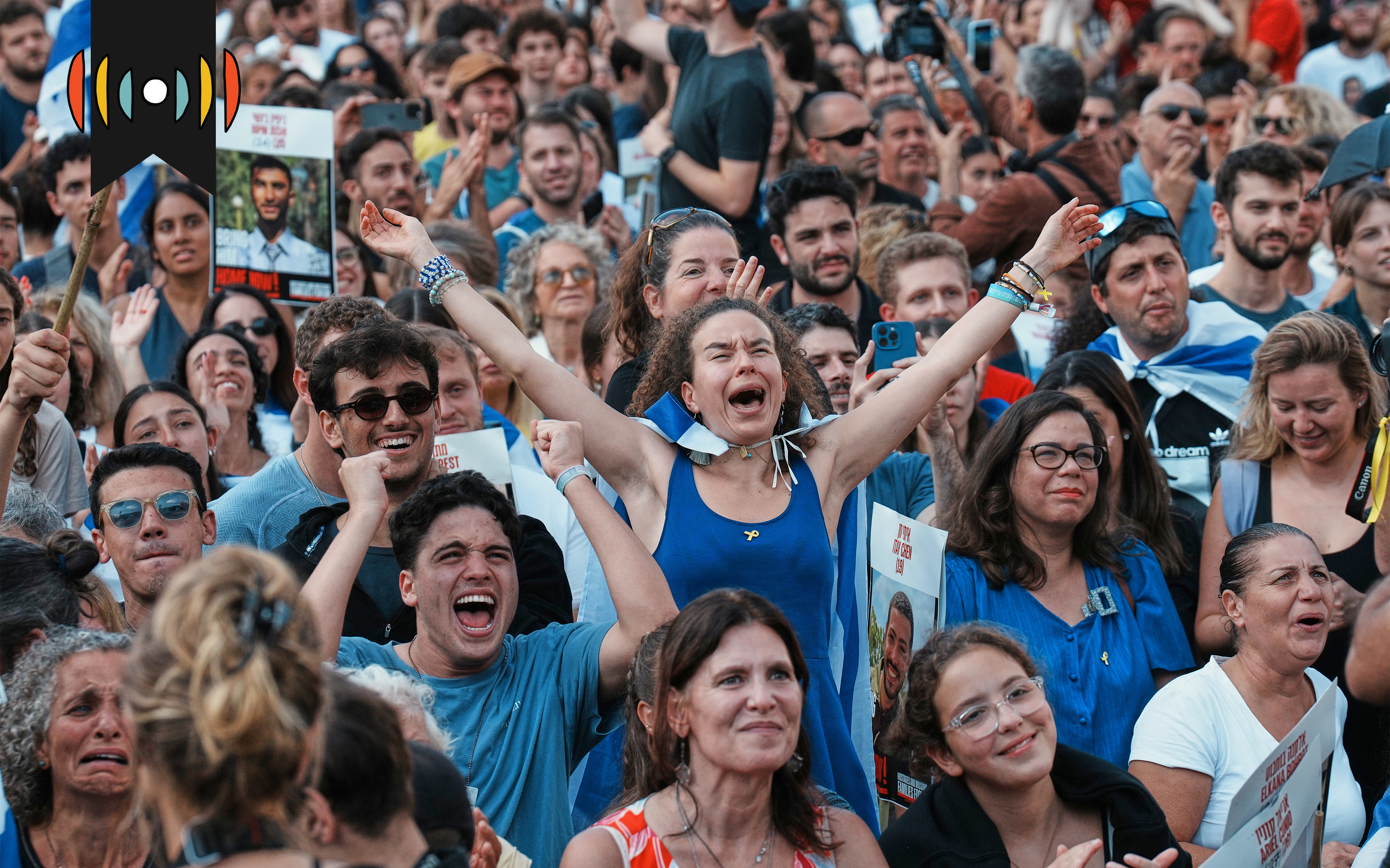 People celebrate the return of hostages from Gaza in Tel Aviv, Israel, Monday. Associated Press / Photo by Emilio Morenatti