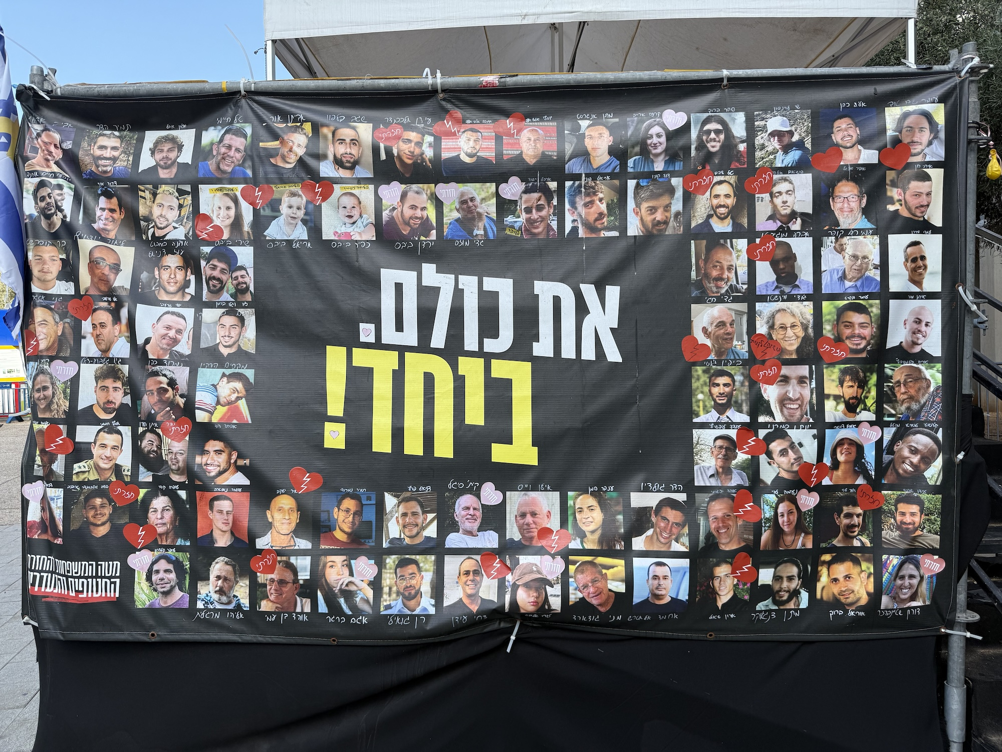 Demonstrators outside the U.S. Embassy branch office in Tel Aviv call for a deal to secure the release of hostages held by Hamas. WORLD News Group / Image by Travis K. Kircher
